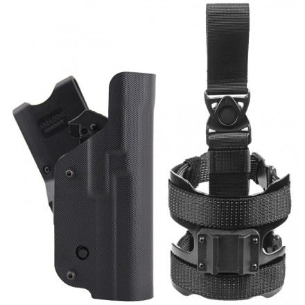 La fondina GHOST III è stata progettata appositamente per le forze di polizia. Attenzione è stata data ai sistemi di sicurezza ed alla scelta dei materiali per garantirne la massima affidabilità e durata nel tempo con il massimo confort. Rappresenta completamente una novità nel mondo della buffetteria per uso professionale. L’estrazione dell’arma dalla fondina GIII è molto istintiva e veloce per l’utilizzatore. Si riesce ad ottenere un immediato e corretto utilizzo dell’arma. La velocità si ottiene grazie alla incredibile naturalezza del movimento di estrazione. Colore Nero.